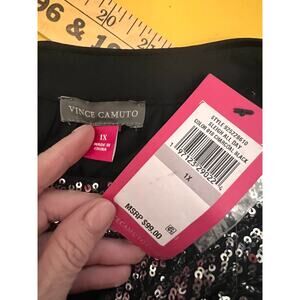 NWT Vince Camuto Raglan Sleeve Keyhole Sequin Blouse Top Silver Women's Plus 1X