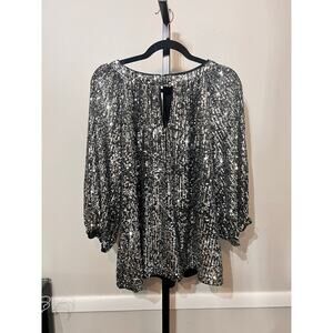 Vince Camuto Raglan Sleeve Keyhole Sequin Blouse Top Silver Women's Plus 1X NWT