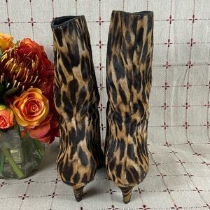 Vince Camuto Rastel3 Animal Print Cow Hide Mid Calf Boots Size 7.5 Cow Fur NWOB