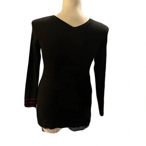 Vince Camuto Red & Black Striped V-Neck Sweater Size XS