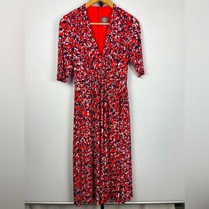 Vince Camuto Red Dot Printed Midi V-Neck 3/4 Sleeve Dress