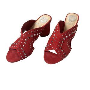 Vince Camuto Red Heeled Sandals Womens 6M Red Suede Studded Slip On Open Toe New