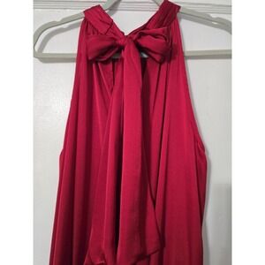 This Vince Camuto Red Satin Halter Neck Tired Flowy Maxi Dress in size 1X is a stunning and versatile option for various occasions. The dress features a solid red color with accents of pleats and ruffles, giving it a stylish and feminine look. Made of polyester satin fabric, this long dress is perfect for a wedding, party, cocktail event, or even a casual or formal gathering. The halter neckline and tie closure add a touch of elegance, making it a beautiful choice for any season.