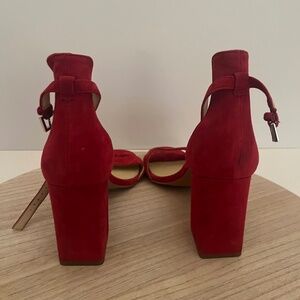 Vince Camuto Red Suede Block Heel Ankle Strap Sandals – 8.5M