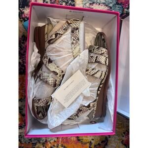 Vince Camuto Resensa Oatmeal Multi Snake Exotic Beige Wedge Shoe Sandal Sz 8W