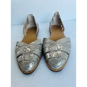 Vince Camuto Reta Woven Silver Leather Croc Embossed D'Orsay Flat Shoes Sz 9M