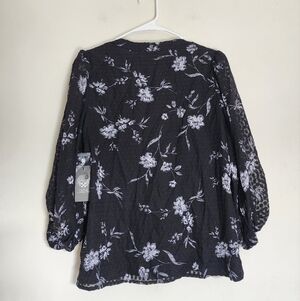 Vince Camuto Rich Black Floral V-neck Mid Sleeve Blouse size Small NWT