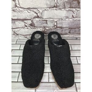 Vince Camuto Rimindel Black Faux Sherpa Fur Mules Block Heel Shoes Women’s 9M US