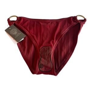 Vince Camuto Ring-accent Rib Knit Jersey Bikini Bottom in Sangria Size Medium