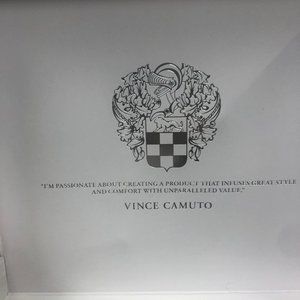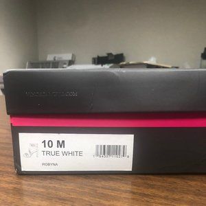 Bring out your edgy style when wearing the Robyna sandal from Vince Camuto. The buckle accents, squared off toe, and barely there heel can be worn with a LBD and statement pieces! Leather upper. Adjustable ankle strap with buckle closure. Square open toe. Synthetic lining. Lightly padded footbed. 33⁄4" stacked heel. Synthetic sole. Color: white