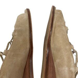 Vince Camuto Rochela Suede Wedge Size 7.5 Sandal Lace-up Tan Peep Toe