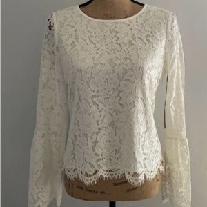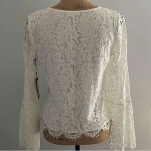 Vince Camuto Romantic Glamour Blouse Ivory Lace Bell Sleeves Size XS