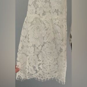 Features: - Ivory / white color - Fully lace with unlined sleeves and lined body - Crew neck - Bell sleeves - Side zipper closure - 35% cotton, 34% nylon, 31% viscose Measurements: All measurements taken laying flat! Bust: 18 inches Sleeve length: 24 inches Length: 21 inches Thank you so much for shopping with me, and please let me know if you have any questions! Offers are always welcome. Bundle to save.