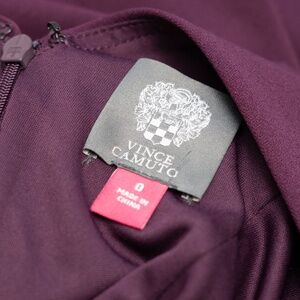Elegant and timeless, this Vince Camuto gown features a sleeveless fitted silhouette with a cascading ruffle hem and a deep V-back. The rich plum hue adds sophistication, making it the perfect choice for wedding guests, cocktail events, or evening celebrations. Crafted from premium fabric for a beautiful, flattering drape.