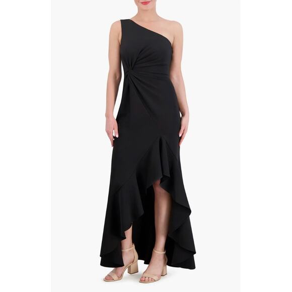 Vince Camuto Ruffle Detail One-Shoulder High-Low Gown Black Size 12 NWT Elegant