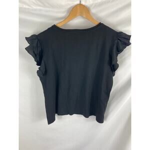 Vince Camuto Ruffle Shoulder Black Blouse Size Large