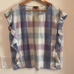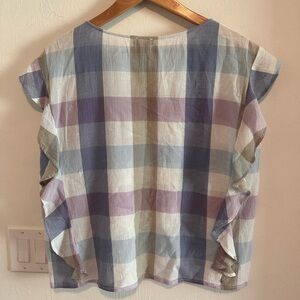 Ruffled Sleeveless Top In Pastel Haze Plaid Size Medium Excellent Condition 100% cotton Pit to pit 22” Length 24”