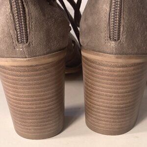 Vince Camuto SZ 11 NWOT Tressa Lace up Taupe Suede Open Toe Block Heel Bootie / Sandal