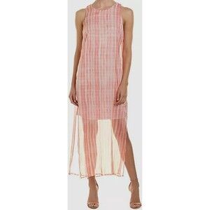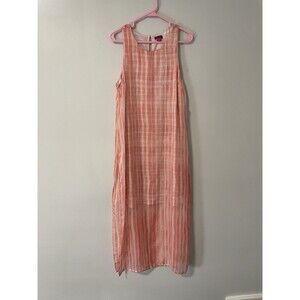 Vince Camuto Salmon Colored Water Striped Sleeveless Gauzy Summer Dress M NWT