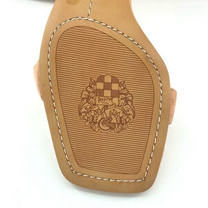 These are Vince Camuto women's sandals, size 8M, in new condition without tags or box. The sandals feature a light pink or salmon color, suede-like material, with a square toe and a block heel. They have an ankle strap with a buckle closure. The soles are tan with the brand logo. There are no visible imperfections.