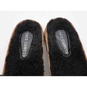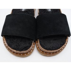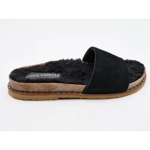 Vince Camuto Sandals Womens 6 Kanadial Black Suede Faux Fur Lined Slides Studded