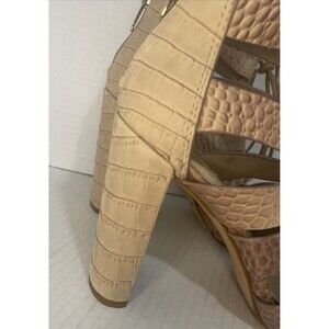 Vince Camuto Sandals Women’s 6.5M Tan Gladiator Heels Croc Block Lace-Up Zip