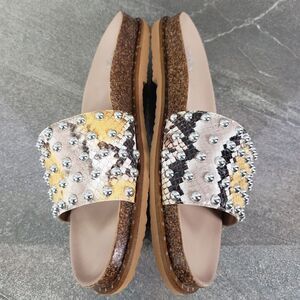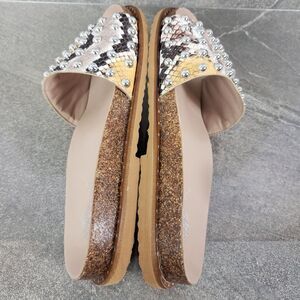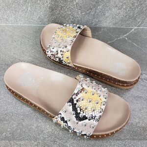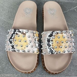 Vince Camuto Sandals Womens 8 Kortlen Studded Slide Taupe Animal Print Shoes