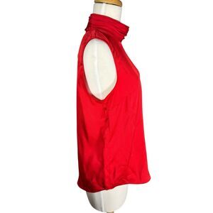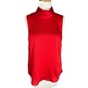 Vince Camuto Satin Mock Neck Sleeveless Blouse Lucious Red Sz S