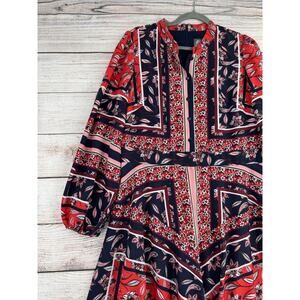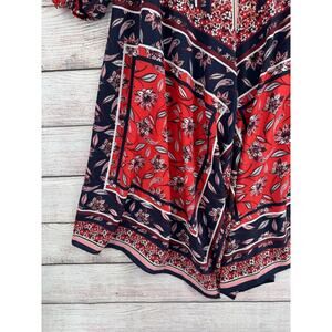 Item: Vince Camuto Scarf Print Handkerchief Hem Dress Women's 14 Red/Blue/White