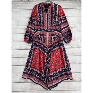 Vince Camuto Scarf Print Handkerchief Hem Dress Women's 14 Red/Blue/White