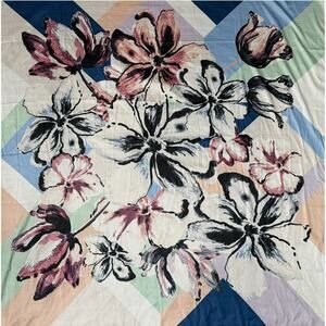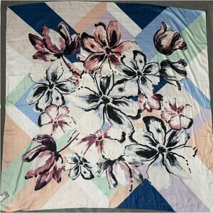 - Vince Camuto Scarf Womens One Size Blue Colorful Floral Grandma Eclectic Retro