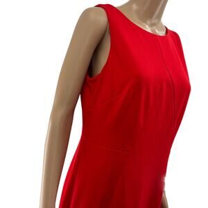 Vince Camuto Kors dress in scarlet red. A body fitting dress with an interesting cut out on the back adds a subtle femininity. Slight boatneck. Sleeveless. Hidden back zip closure. Cutout upper back. Vented at back hem. Has stretch. Lined. Polyester / spandex. Machine wash. In preowned condition.