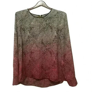 Vince Camuto Scoop Neck Blouse Long Sleeve Ombre Leopard Multi Women's Size M