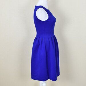 Back zipper. Thick, stretch material. Sleeveless. Fully lined. Side seam pockets. Fit and flare style. Not lined.