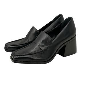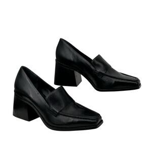 Vince Camuto Segellis Leather Heeled Loafer Women’s SZ 9 Black Schoolgirl Career Dark Academia Preppy