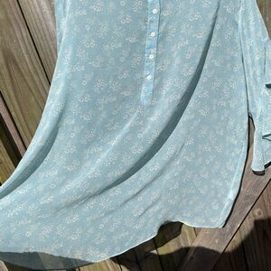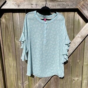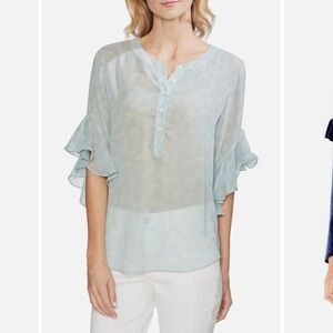 Vince Camuto Semi Sheer Floral Flutter Sleeve Popover Plus Size Blouse