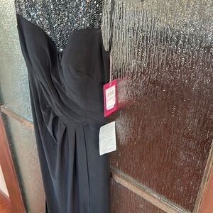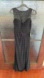 This stunning black evening gown features a shimmering neckline and a sleek silhouette, perfect for any formal occasion.