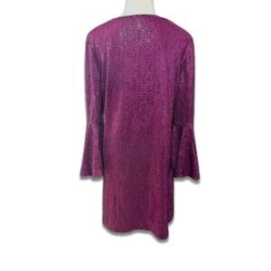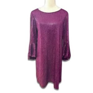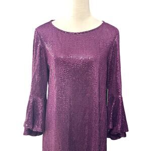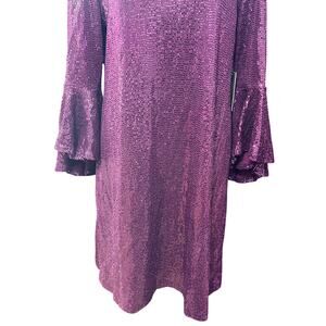 Vince Camuto Sequin Sheath Dress Flounce Sleeves Rounded Neckline Purple L NWT