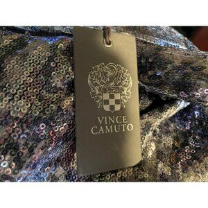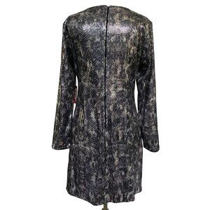 Vince Camuto Sequined Snake Embossed Long Sleeve Dress Sz 12 Silver Gray NEW
