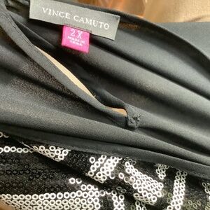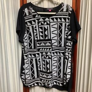 Vince Camuto Sequined Top Black White Abstract Short Sleeve Size 2X