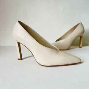 Vince Camuto Setenda Almond Milk Leather Pointed Toe Heeled Pumps Shoe Size 8.5