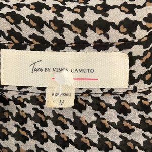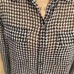 Vince Camuto Sheer Houndstooth Blouse medium button down career black neutral M