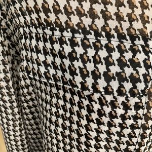 Black, white and tan colored houndstooth print. Great for work and even night outs! 100% polyester