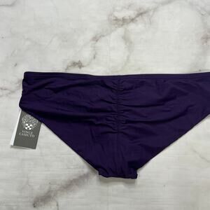 Vince Camuto Shirred Back Bikini Bottom Size L Deep Plum Purple Hipster New