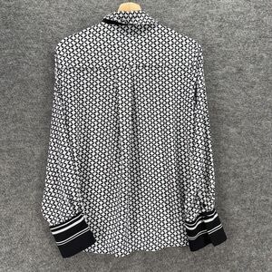 Vince Camuto Shirt Women M Medium Black Geometric Plaid Button Up Collared