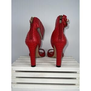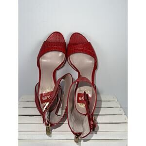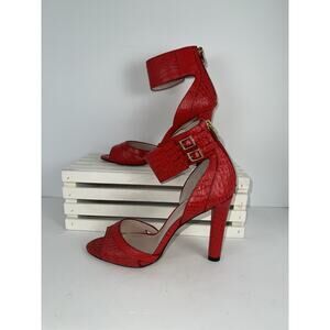 Vince Camuto Shoes Womens Size 6.5 Red Croc Embossed Ankle Strap Heels Sandals