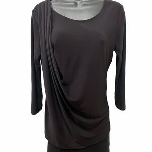 Vince Camuto Shoulder Drape Top Women’s Black 3/4 Length Sleeve Scoop Neck Tunic Small