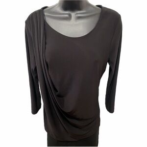 Vince Camuto Shoulder Drape Top Women’s Black 3/4 Length Sleeve Scoop Neck Small