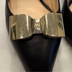 Vince Camuto Signature Black Leather Heels/ Pumps W/ Gold Bow Sz US 8 EU 38