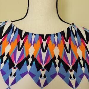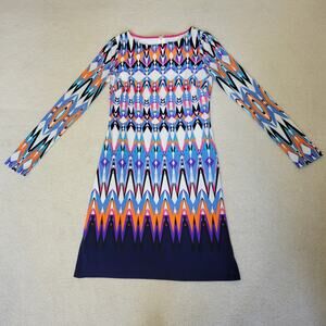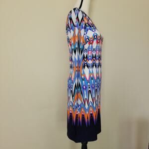 Vince Camuto Size 2 Lined Sheath Dress Long Sleeve Knee Length Vibrant Geometric
